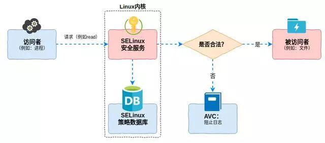 SeLinux全称为安全增强式 Security-Enhanced Linux(SeLinux),是一个在内核的强制存取控制(MAC)安全性机制。SeLinux的整体架构和原理都比较简单,使用也不复杂,其复杂的地方在于规则非常复杂,每个进程都要有规则策略;SeLinux 遵从最小权限的理念,在开启SeLinux的情况下(enforcing 模式),所有访问默认是被拒绝的,而有一系列例外的策略来允许